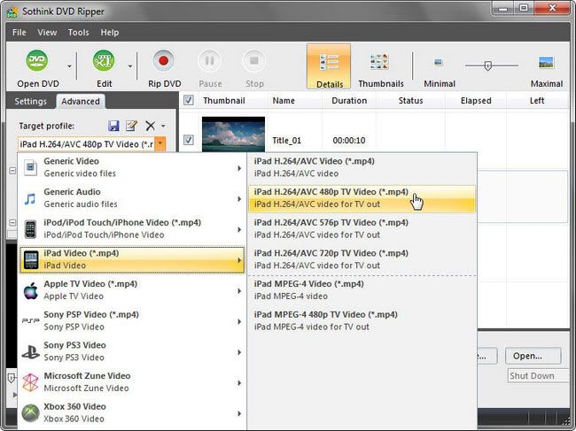 Lay the source DVD disc in your PC drive or store your DVD folder in PC directly. Launch Sothink DVD Ripper, and click button a€?Open DVDa€? to import the DVD movies you want to enjoy on your HTC Desire HD. (Youa€?ll find all DVD titles are listed in the program and have been ticked, except the ones shorter than 10 seconds. By default, it will hide and ignore the DVD titles shorter than 10 sec, which is for helping you jump over some advertisement or other unnecessary clips in the movies.) Go to select target profile for ripping DVD to HTC Desire HD. And then, click button a€?Rip DVDa€?.